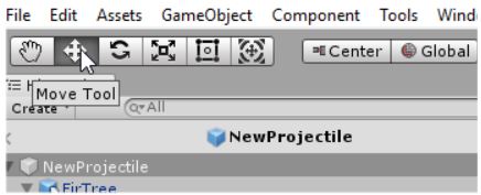 18. 그런 다음 이동 도구를 선택하십시오 . 새 게임 오브젝트 를 메시 끝 으로 옮길 것 입니다.