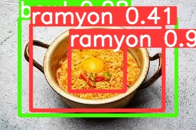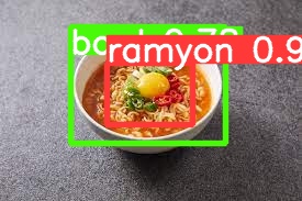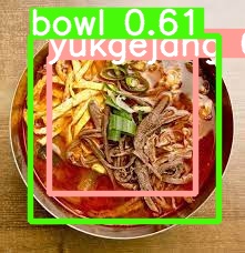 아래 사진은 인터넷에서 다운받은 사진으로서 육개장, 냉면, 라면, 콩장, 짜장면을 인식한 샘플사진이다.