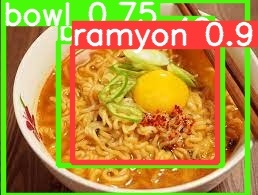 아래 사진은 인터넷에서 다운받은 사진으로서 육개장, 냉면, 라면, 콩장, 짜장면을 인식한 샘플사진이다.
